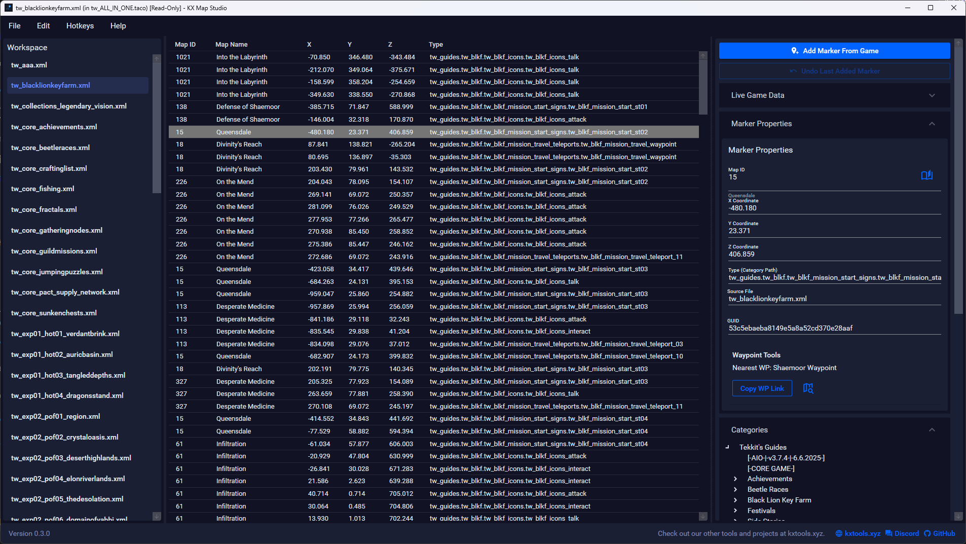 Visually create, edit, and manage your TacO and BlishHUD marker packs with KX Map Studio, the definitive desktop app for route and map creators.